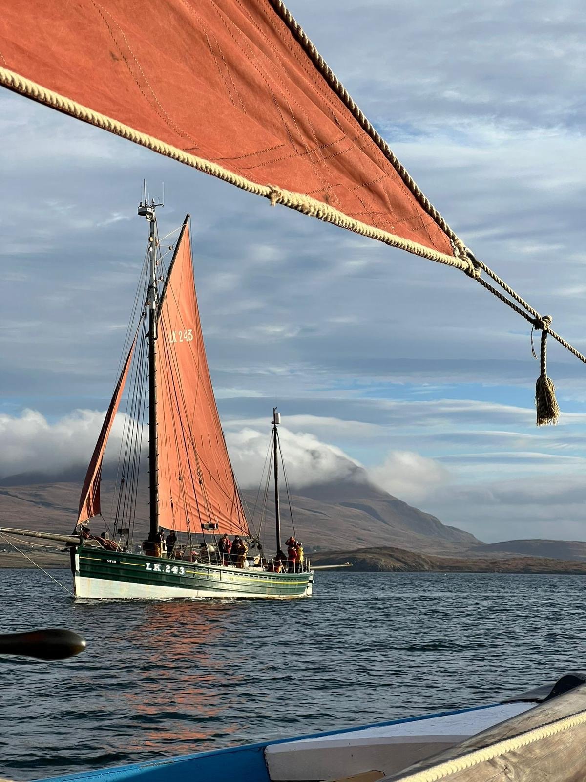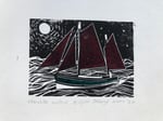 Small lino print inspired by a passage north from Ullapool in November '24 to Shetland, aboard the Swan LK243 - under a full moon on a high sea.