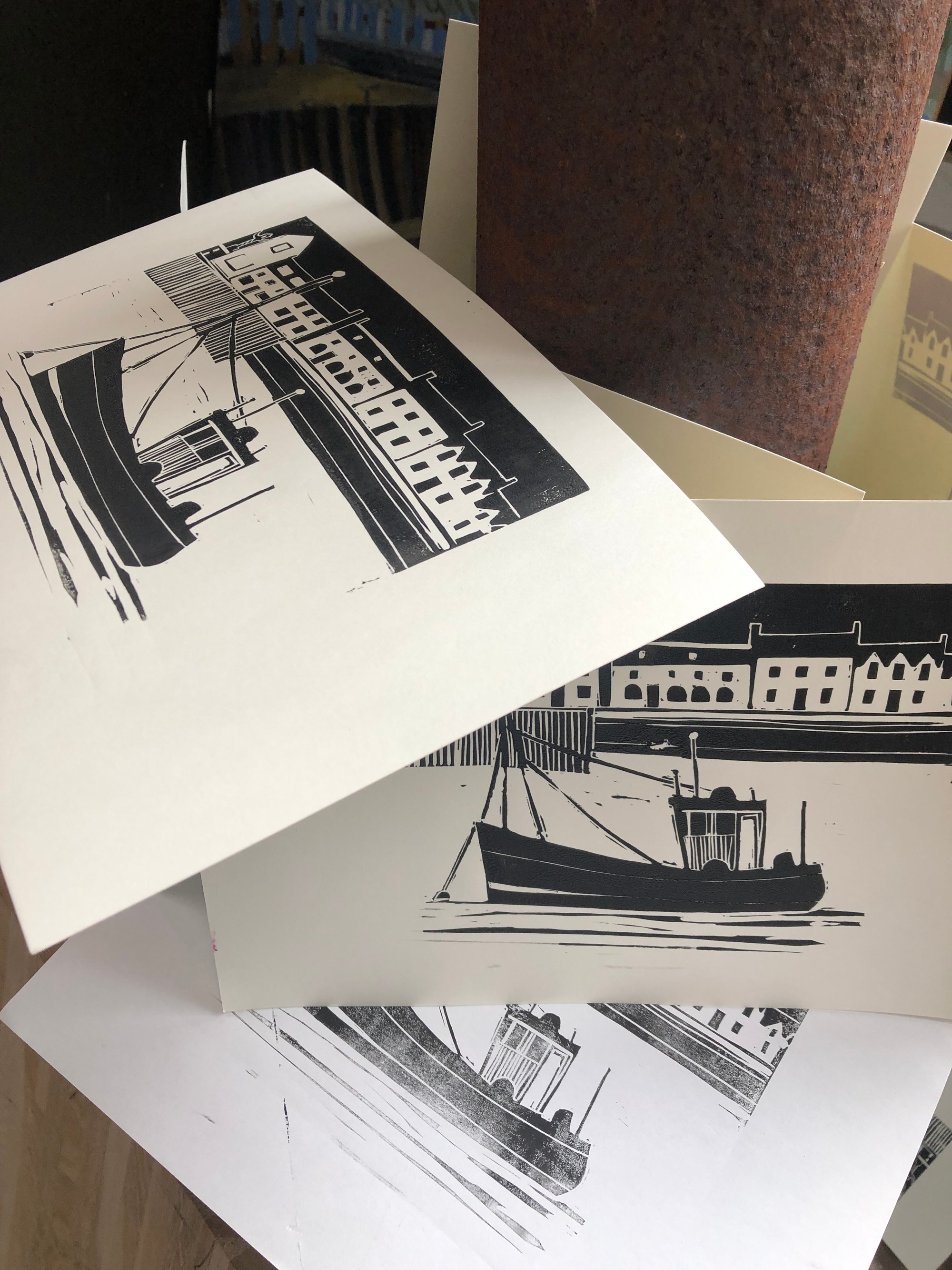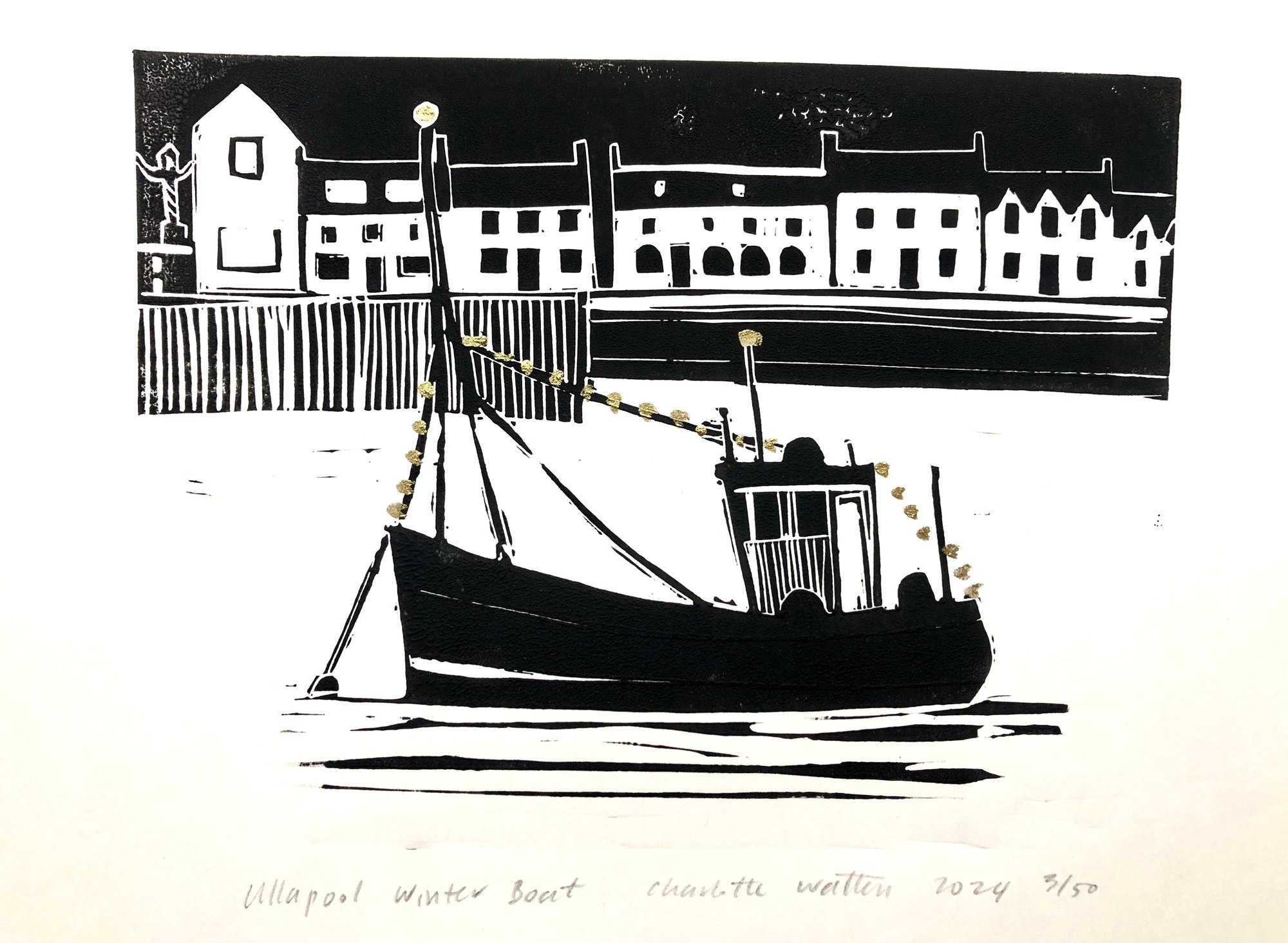 There are 2 visions of this print, one with gold lights hand painted on the boat and one without. - to select the version with the gold highlights as shown here please select this Variant when ordering.