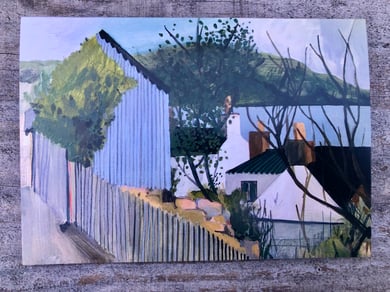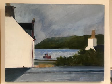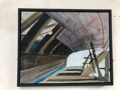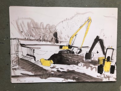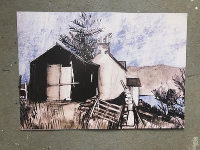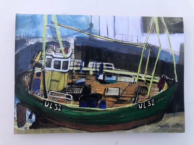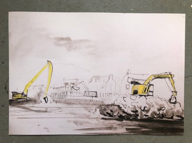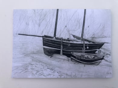 Print of a pencil drawing . St. Vincent and Fame hauled up the slip way